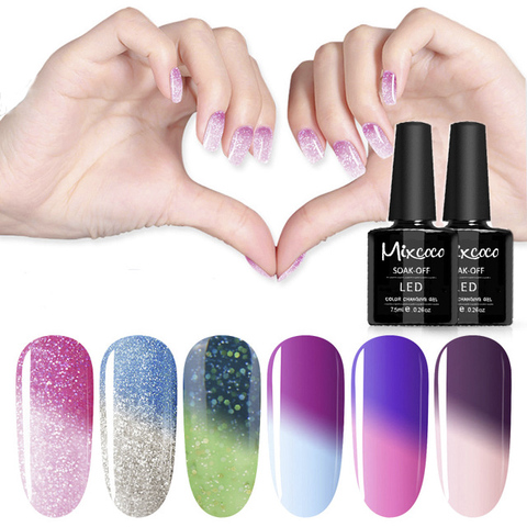 Mixcoco هلام مسمار عدة تلميع درجة الحرارة تغيير لون هلام البولندية الحرارية نقع قبالة الأشعة فوق البنفسجية ورنيش جيل led لصالون